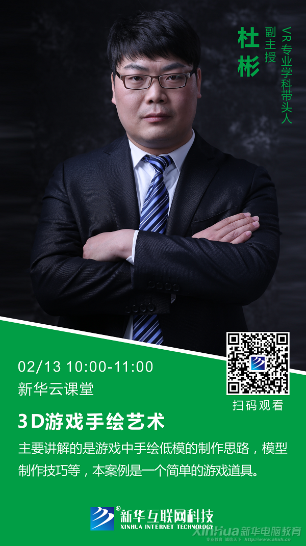 新華學子都知道的《新華云課堂》又有大咖開課啦!今天來的是VR專業金牌導師杜彬,杜彬老師要為大家講授的是課題是:3D游戲手繪藝術。