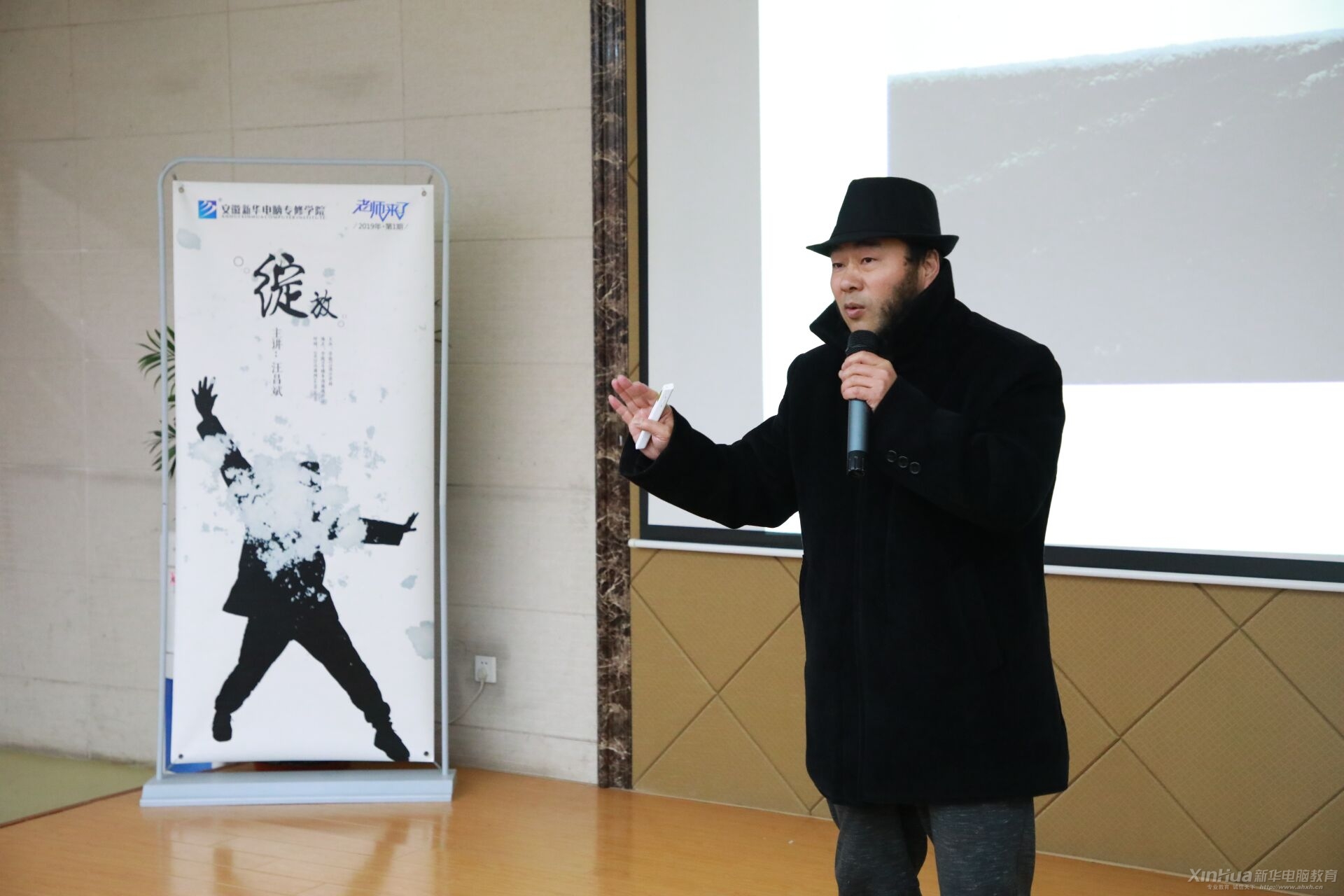 2019年1月21日,國內資深視覺設計總監汪昌斌在安徽新華電腦專修學院5號樓報告廳,為數字文創學院的學子開展名為“綻放”的專題設計講座。