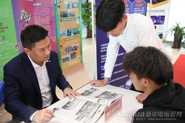安徽新華電腦專修學院老師免費為來訪學生及家長詳盡介紹學歷提升、技術認證、專業的教學特色、行業前景、創就業服務、教學管理、助學政策等內容,同時還有超熱血電競比賽、感恩講座、答辯現場、試聽課程等豐富活動,更有機會親身體驗VR、AR等高科技的神奇魅力!