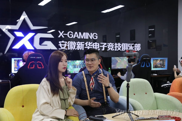 同時現場還請到了電競知名媒體人曹起老師的團隊,與同學們進行了零距離的交流互動,并且由電競學院特別記者董琪老師對曹老師進行了采訪,曹起老師對安徽新華電腦專修學院電競專業教學水平給予了高度評價,并從專業的角度肯定了安徽新華電腦專修學院的實訓教學環境,同時他鼓勵同學們努力學習,抓住寶貴的時代機遇,爭做電競行業里弄潮兒。