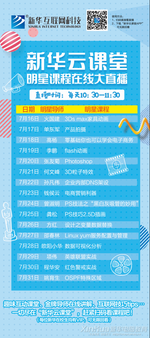 說了這么多,都不如你親自上線體驗一下。接下來就是發福利的時候啦,小編這就把7月所有新華云課堂的課程安排告訴大家吧,拿走不謝!
