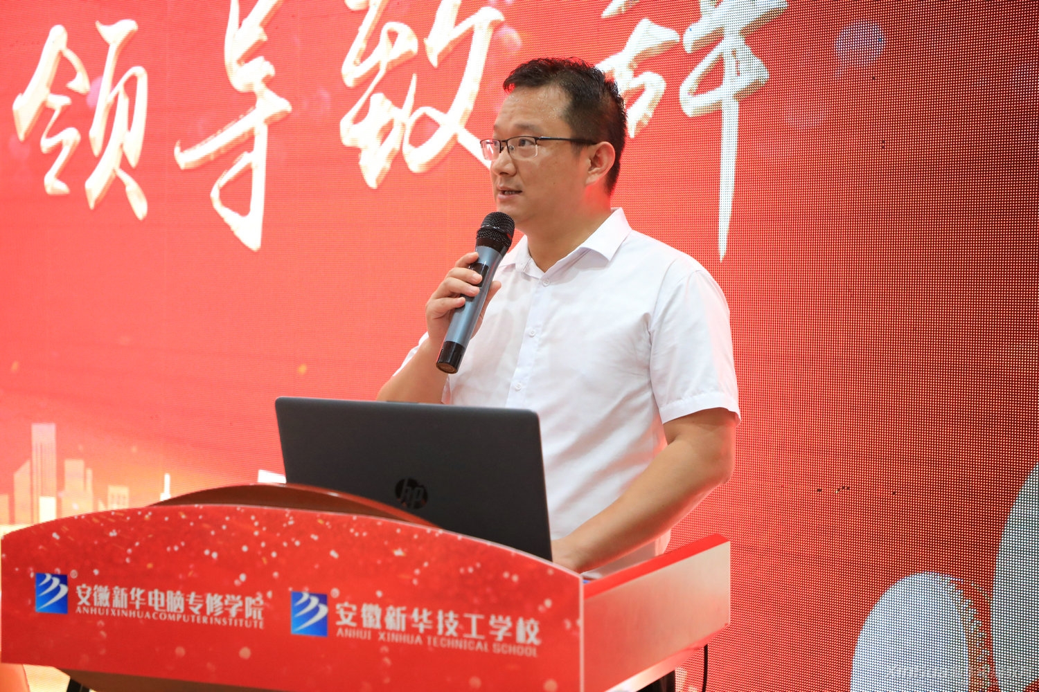 在開場視頻結束后,安徽新華電腦專修學院校區主任為儀式致歡迎詞,并在致辭中表示:此次“杰出校友母校行”的舉辦,旨在增強校友之間、校友與母校之間的聯系,起到校友與母校間互相幫助、互相促進的積極作用。安徽新華電腦專修學院也將更好的搭建校友資源共享平臺,為廣大新華學子做好服務。