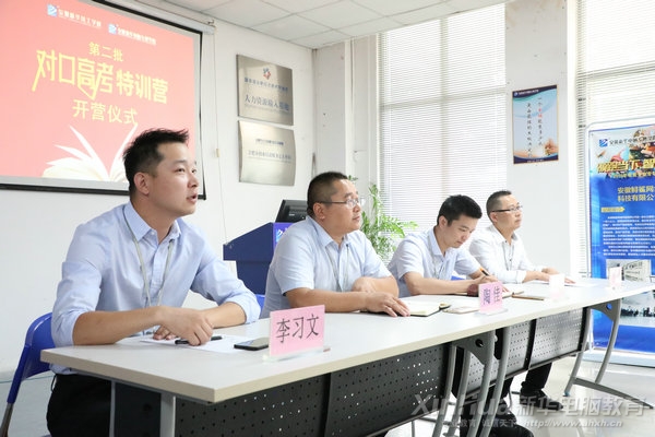 舉辦對口高考預科班特訓營是安徽新華電腦專修學院發(fā)展史上的首創(chuàng),是學院升學就業(yè)兩條腿走路新的實踐探索。我院教務處主任、學生處主任、對口高考預科班各班主任、任課教師及預科班的全體學生參加了此次開營儀式。