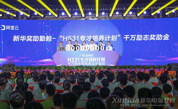 新華教育集團電腦事業部副總經理徐虹上臺宣讀《關于設立新華互聯網科技獎助勤勉-“H531專才培養計劃”千萬獎助金的決定》拉開千萬勵志獎助金的序幕。