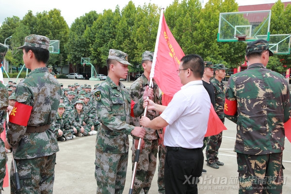 校區(qū)主任向軍訓(xùn)團(tuán)教官授旗