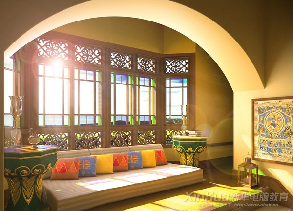 作品點評:有著異域風情的裝飾風格,帶給人的是另類的刺激和新鮮感。室內裝飾多使用華麗的壁毯和地毯,使用濃烈的色彩在心理上擺脫荒蕪與枯燥的環境。