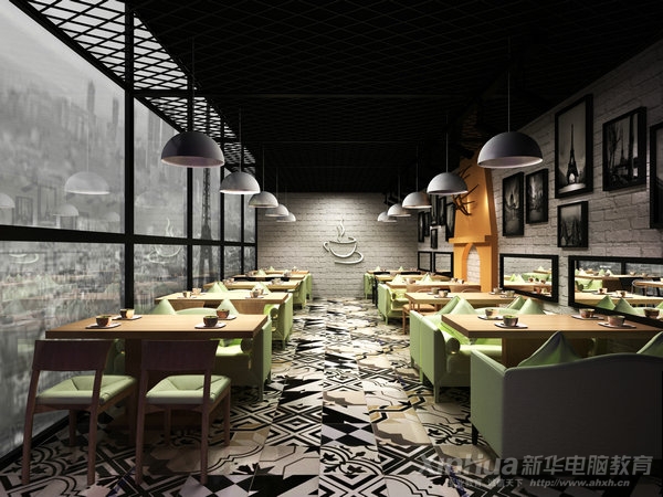作品點評:時尚摩登的黑白花色小瓷磚,讓整個空間凸顯了一種文藝感,非常適合咖啡廳這種小資情調的空間設計。