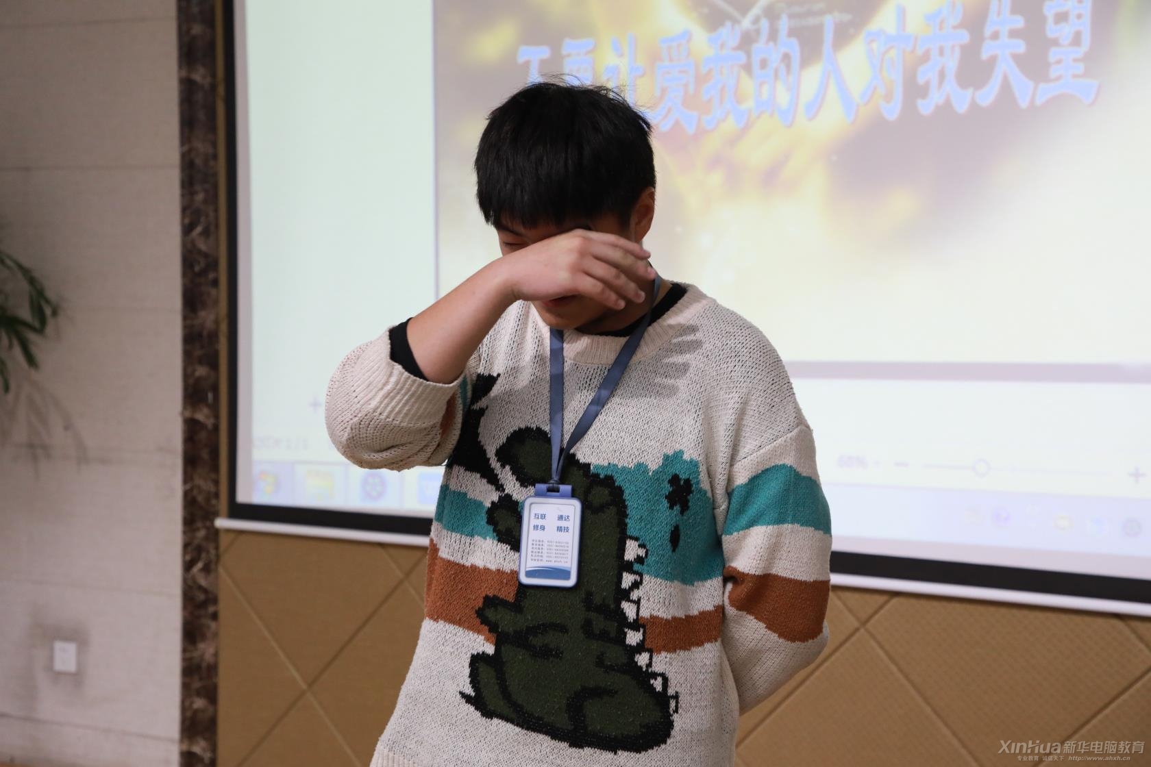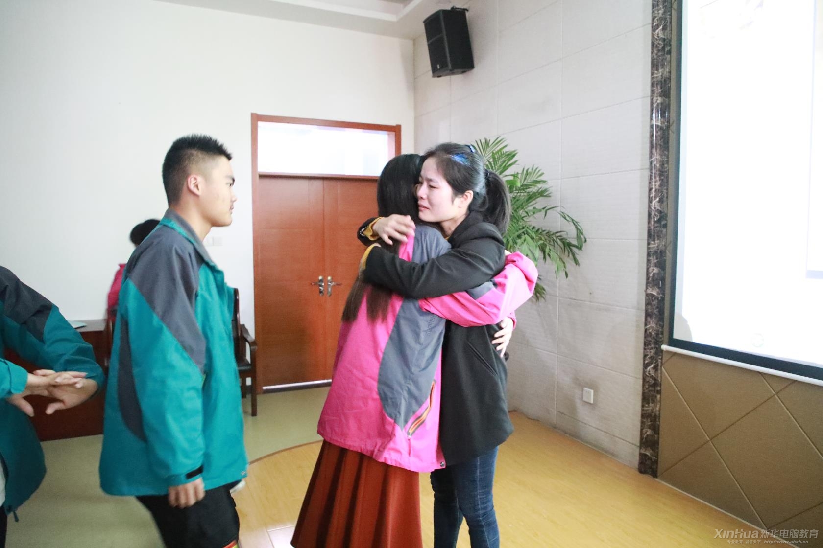 主題講座上,李婷老師及我院多位班主任激昂演講,講述了老師教書育人的艱辛和天下父母的良苦用心、殷切期望。激情的演講,深深打動了在場的學生。在1個多小時的演講過程中,全體學生與班主任相互以一次握手或一個擁抱對對方表示感恩。一個看似很簡單的擁抱,卻是很多學生、老師從未有過的舉動,但這個簡單的擁抱給學生、老師帶來的震撼卻非同一般。師生激動的淚水,讓感恩之情觸手可及。