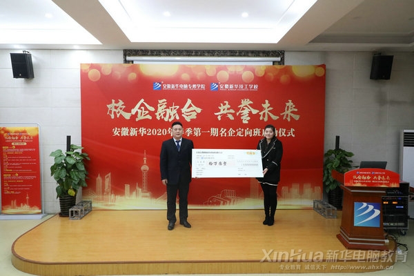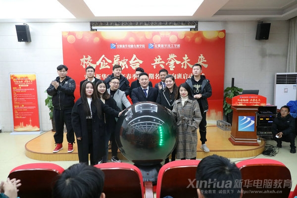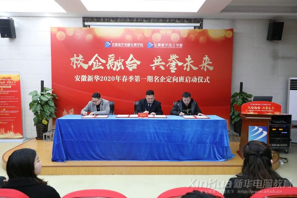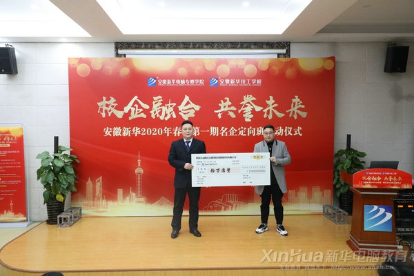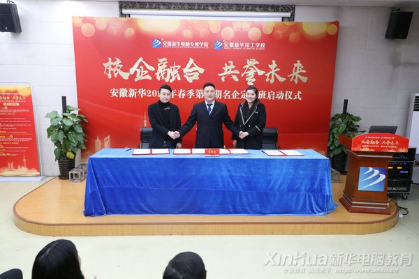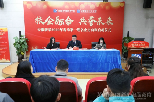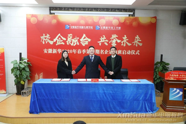 騰訊互動娛樂安徽里程舟網絡科技有限公司、百度安徽網新科技集團有限公司、鳳凰安徽、聯想安徽陽光雨露信息技術服務有限公司、安徽智軒廣告傳媒有限公司、安徽照華網絡科技有限公司、萬家熱線、生活家裝飾、安徽人和市場、安徽中漫影業有限公司等名企代表悉數出席,共同見證2020年春季首期定向班的召開,并與安徽新華電腦專修學院簽訂人才預定書。