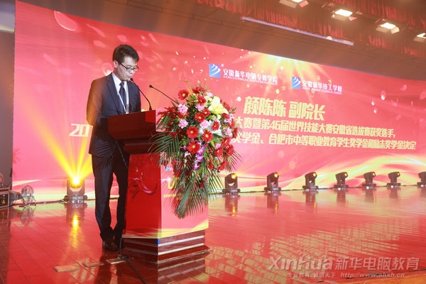 精彩的節目過后,是激動人心的表彰環節。我院副院長顏陳陳上臺宣讀第八屆全省職業技能大賽暨第46屆世界技能大賽安徽省選拔賽獲獎選手名單和2018-2019中等職業教育國家獎學金、合肥市中等職業教育學生獎學金和勵志獎學金決定及名單。