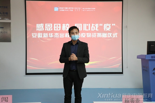 黃闖畢業(yè)于我院電子商務(wù)專業(yè),目前是安徽一美科技有限公司總經(jīng)理。談及本次向母校捐贈(zèng)防疫物資,他說:做企業(yè)首先是一種責(zé)任一份擔(dān)當(dāng),在非常時(shí)期能為社會(huì)、為母校做出一些貢獻(xiàn),是我們的光榮,同心戰(zhàn)“疫”,我們還在路上。