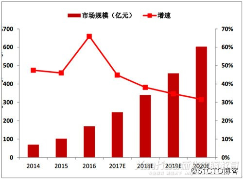 目前,云計算產業的發展勢頭依舊強勁,2017年在全球范圍的云服務市場規模達到了 745億美元,我國的云服務市場規模達到了640億元人民幣,年增長速度分別達到24.9%和28%。預計從2018年到2020年,我國云計算市場規模的發展速度將會顯著高于全球云計算市場規模的增長速度。