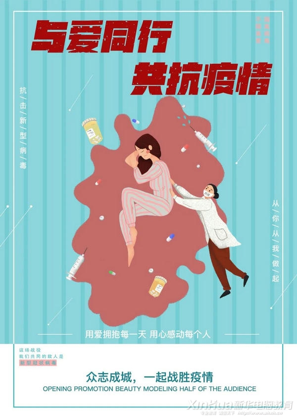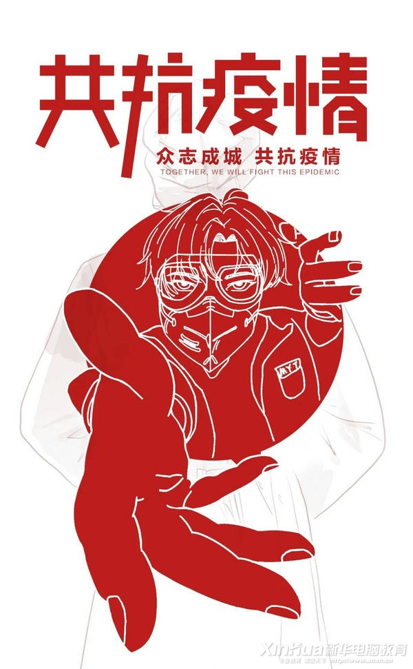 以中心發(fā)散的形式將視覺中心吸引到畫面中央,突出了眾志成城,共渡難關(guān)的主題,畫面的豎構(gòu)圖拉升了整體的空間,能給讀者更多遐想的空間。