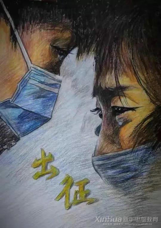 整幅作品主要是以淺藍(lán)色為主色調(diào),意喻著美麗和潔凈,象征著保護(hù)。疫情無情人有情,醫(yī)護(hù)人員顧不得團(tuán)圓,冒著生命危險(xiǎn)前去武漢支援,他們是時(shí)代最美的“逆行者”,更是我們心中最可敬的時(shí)代英雄。