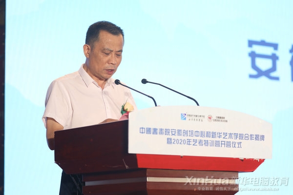 中國書畫院副秘書長、安徽創作培訓中心主任王衛民接著上臺致辭:中國書畫院匯聚了卓有建樹、德藝雙馨的中國書畫藝術名家,千余位中青年專業書畫藝術家及眾多有經驗的書畫教學導師,此次與新華藝術學院緊密合作是攜手共育藝術人才、強強聯合的典范。
