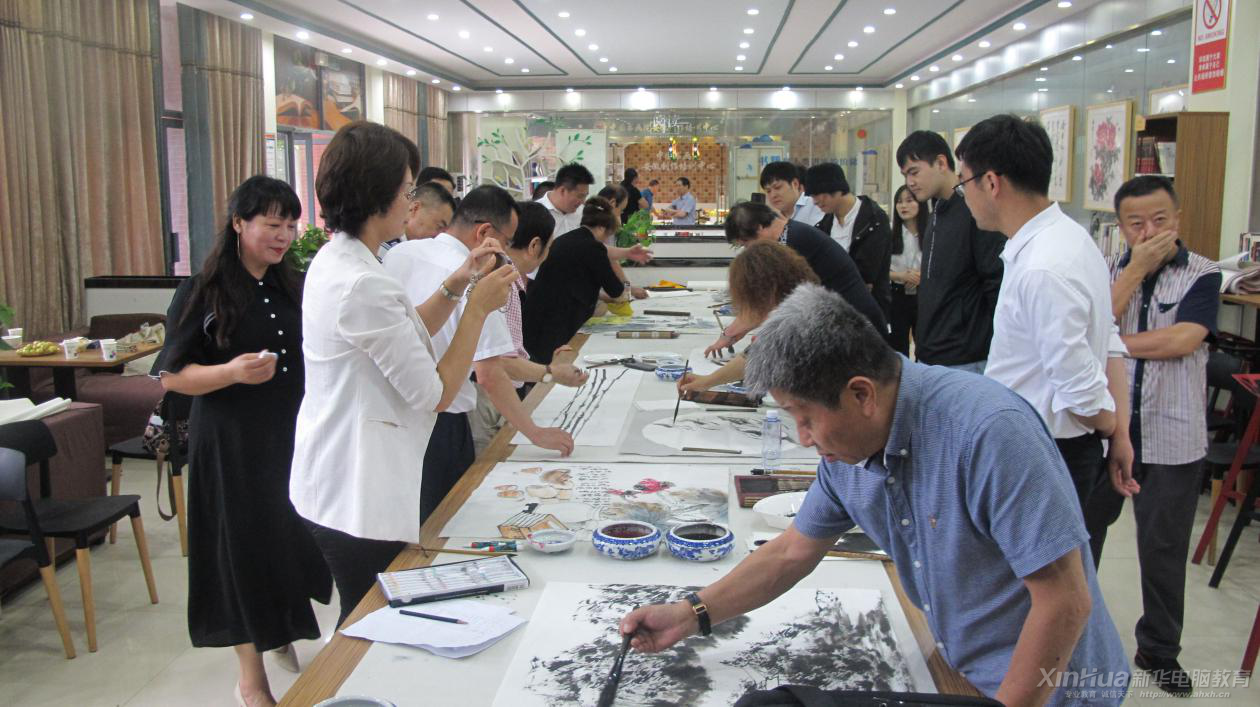 下午13點40分在新華藝術學院的創作培訓中心一樓舉行師生藝術交流筆會,藝術名家現場創作了近80幅書畫作品,讓新華藝術學院的師生,現場感受到了中國書畫的魅力,為本次合作揭牌儀式的成功舉辦獻上最真摯的祝福!