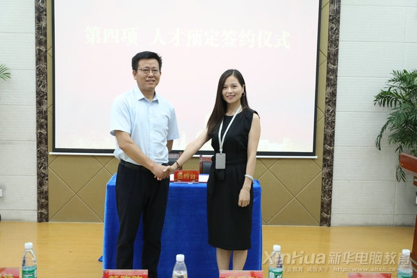 發布會后,2020新專業(航空服務與軌道智慧管理、健康照護與智慧管理)發布會暨企業人才預定簽約儀式正式開始,在場領導嘉賓先后上臺,共同啟動與見證了本次2020新專業發布會的正式啟動發布,并與安徽中安鐵航教育投資集團有限公司、安徽樂金健康管理有限公司、合肥眾鑫健康體檢門診部有限公司共同簽訂人才預定書。
