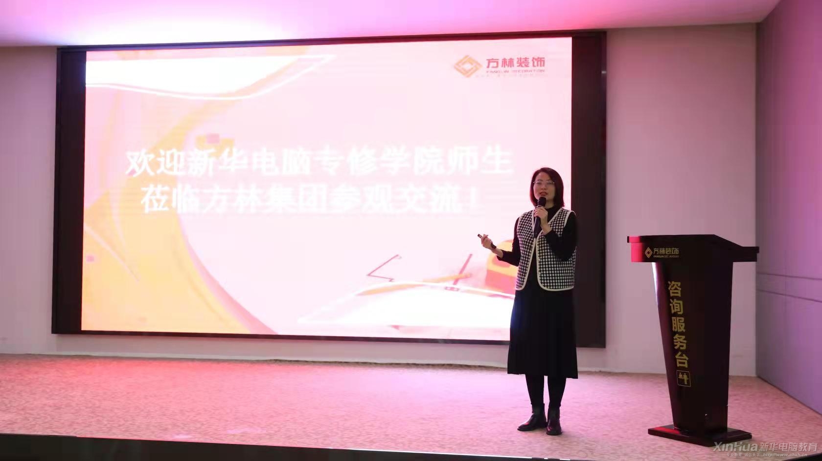 方林裝飾的企業人員為同學們介紹了公司的概況、公司的企業文化、公司的發展戰略及可提供的工作崗位等。隨后,大家跟隨設計師參觀了企業的瓷磚區、木地板區、衛浴區、吊頂區、木門區、櫥柜區、輔材區、家具區、辦公區等樣板間,并就感興趣的問題與企業人員進行了咨詢和交流。