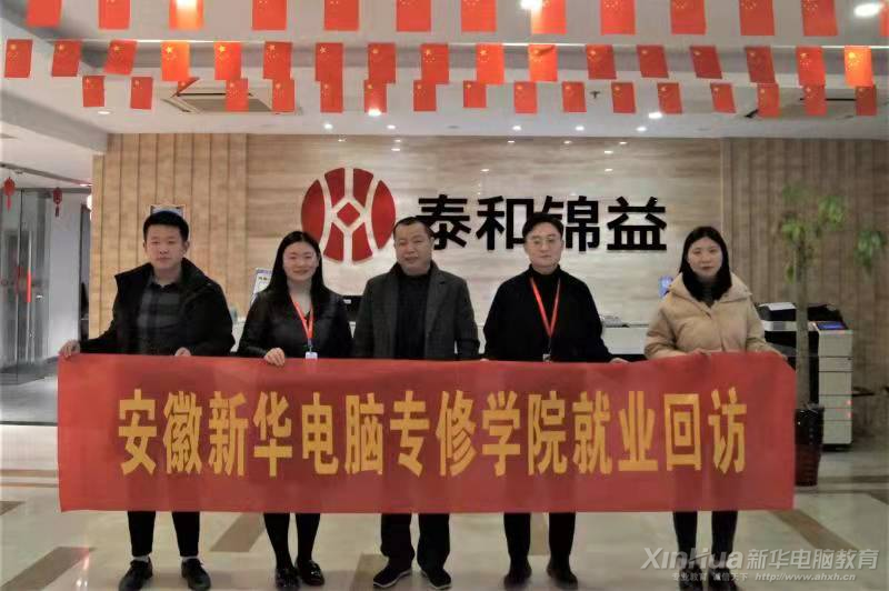 安徽新華三十余年辦學歷史中,為社會輸送一大批高技能應用人才。每年都有大批新生入學,同時也有前方就業學子傳來佳音。近期,我校創就業指導中心的領導和老師們赴合肥泰和錦益科技有限公司,跟進我校2019年畢業的兩名學生葉磊和裴夢婷在該公司的工作現狀,短短兩年時間,裴夢婷同學現在在該企業擔任管理層崗位,她表示雖已離開母校兩年,但他們仍然心系母校發展和學弟學妹的就業情況。