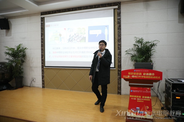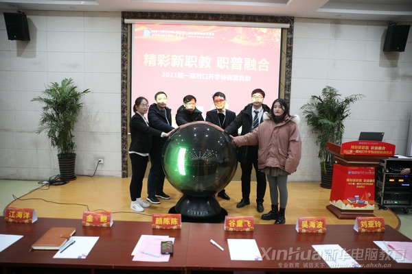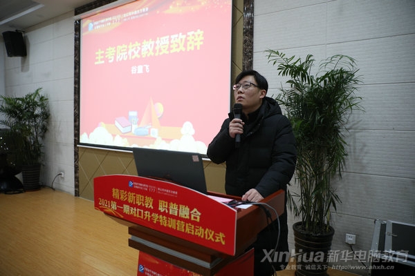 2021年1月7日,“精彩新職教 職普融合”2021第一期對口升學特訓營在學術報告廳正式啟動。安徽新華電腦專修學院 副院長顏陳陳、合肥師范學院藝術系副教授谷童飛與我院師生一起,了解對口高考、探討對口高考、走進對口高考,堅定圓夢大學的信念,以科學的方法、積極的心態投入對口升學的學習中去。