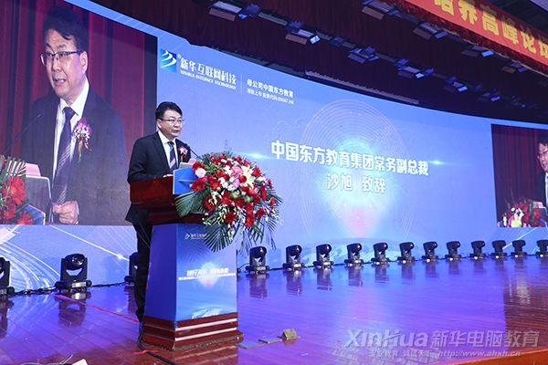 中國東方教育集團常務副總裁沙旭首先致開場詞,沙總表示: 社會的發展需要人才的支撐,信息技術的進步同樣需要互聯網相關人才的支撐。校企合作、工學結合,職業教育與行業聯合等教學模式,將會為職業教育產教融合協同育人指明方向!