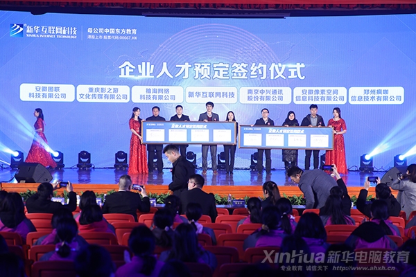 中國東方教育集團創就業部部長助理丁艷紅與12家企業領導簽訂人才預定協議