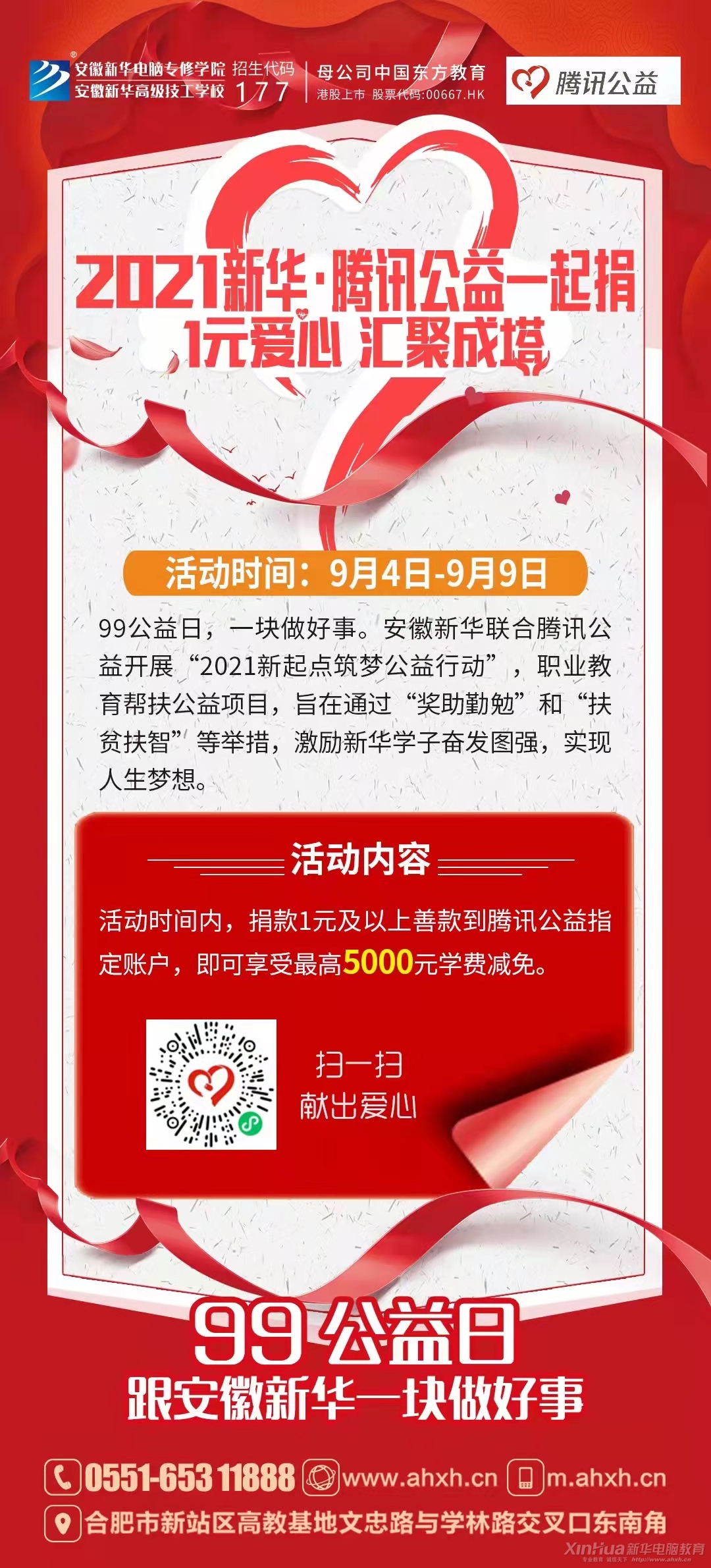 人人奉獻一點愛,世界更美好。在99公益日到來之際,新華互聯網科技全國30所院校將參與騰訊公益平臺捐贈活動, 幫助所有待業青年、困難學子尋得求學機會,為學子們學習技術助力,為他們的家庭減輕負擔。本次“新起點,筑夢公益行動”,以技術為杠桿撬動經濟發展,以公益感召凝聚社會力量,助力夢想。新華互聯網科技師生共同獻力,截止今日已累計募捐三百多萬,用點滴愛心為社會公益添彩。