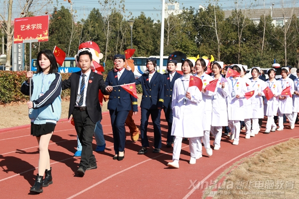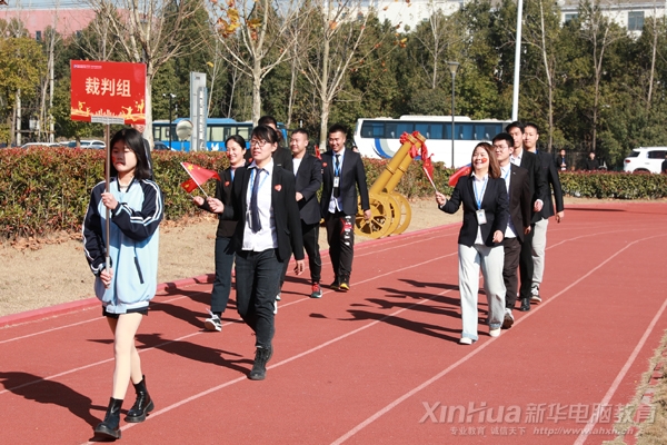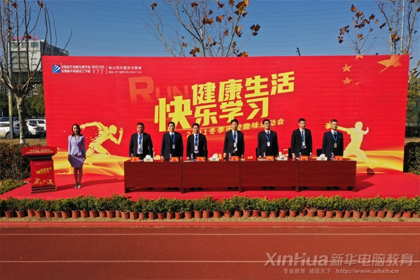 12月3日上午,運動會開幕式在足球場隆重舉行,安徽新華電腦專修學院、安徽新華高級技工學校校長王勝,副校長顏陳陳,校長助理王俊,各院部領導與全體師生歡聚一堂。奏唱國歌之后,副校長顏陳陳致開幕詞,本屆田徑趣味運動會的舉辦,是對我校“三教三訓”成果的集中展示,是對全體同學精神風貌的一次集體檢閱,也是對我校一年來體育教學成果的集中檢驗。
