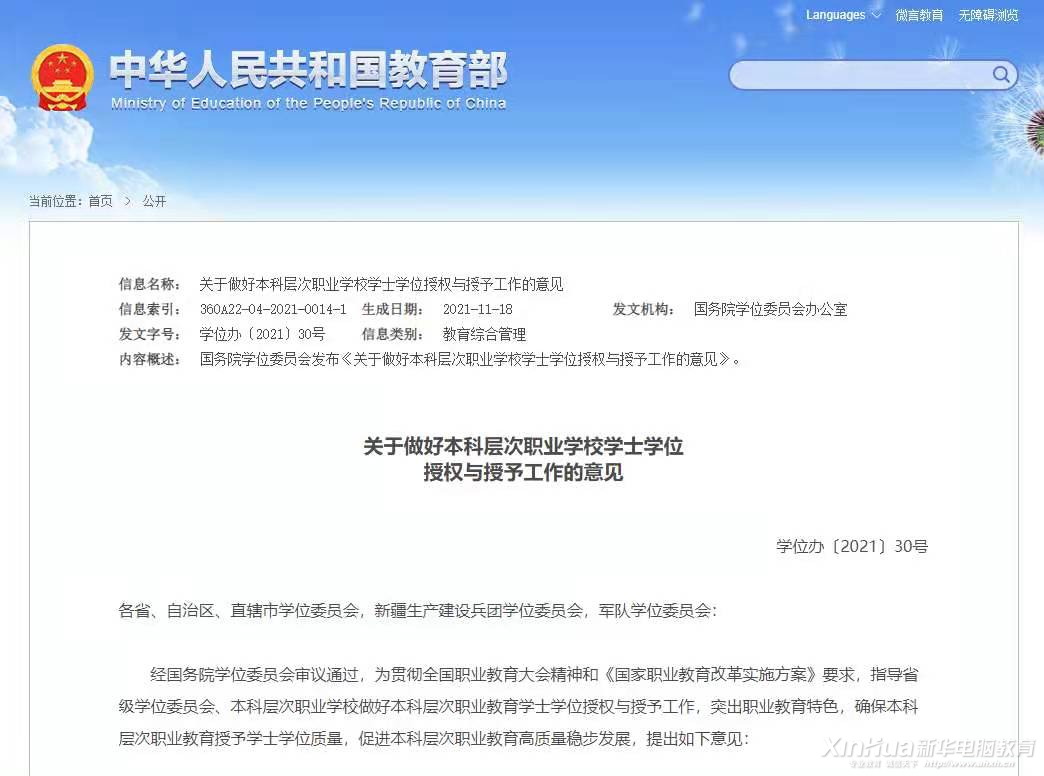 此次明確將職業(yè)本科納入現(xiàn)有學士學位工作體系,更是讓職業(yè)院校學生打消了,讀職業(yè)院校學歷不被承認的顧慮!