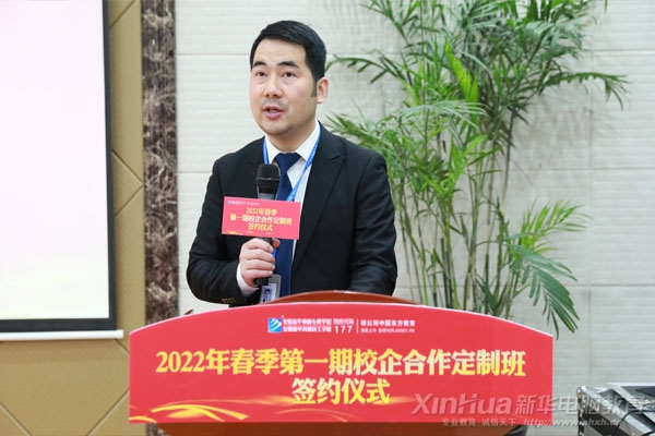 隨后,泰盈科技集團有限公司代表在致辭中表示泰盈科技選擇與安徽新華合作簽約校企定制班,出于對安徽新華人才培養(yǎng)模式和人才培養(yǎng)成果的認可,安徽新華畢業(yè)學子的學習能力以及職業(yè)素養(yǎng)是有目共睹的。
