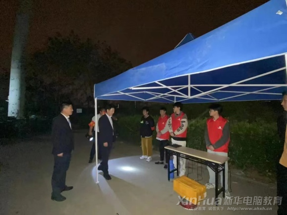 看新華校園門口飄揚的鮮艷黨旗,那是沖鋒在抗疫一線的黨員和志愿者們炙熱的信仰。在黨旗召喚下,新華電腦教育堅持黨員帶頭、干部先行、全員行動共抗疫情。在校門口搭建起臨時黨員崗,新華千余名老師和近萬名志愿者全面下沉基層防疫一線,24小時在崗在線,凌晨的樓棟深夜的校園都留下他們巡邏和消殺的身影,特殊時刻守望相助, 筑起校園疫情防控網格化管理的重要屏障。為確保在校師生安全,新華電腦學校每兩天全員檢測一次核酸,各崗位有條不紊開展核酸檢測工作。志愿者和老師們在檢測現場,認真做好健康碼錄入工作、維護秩序、排隊引導等工作,用一次次的提示和引領踐行著新華人的初心使命。