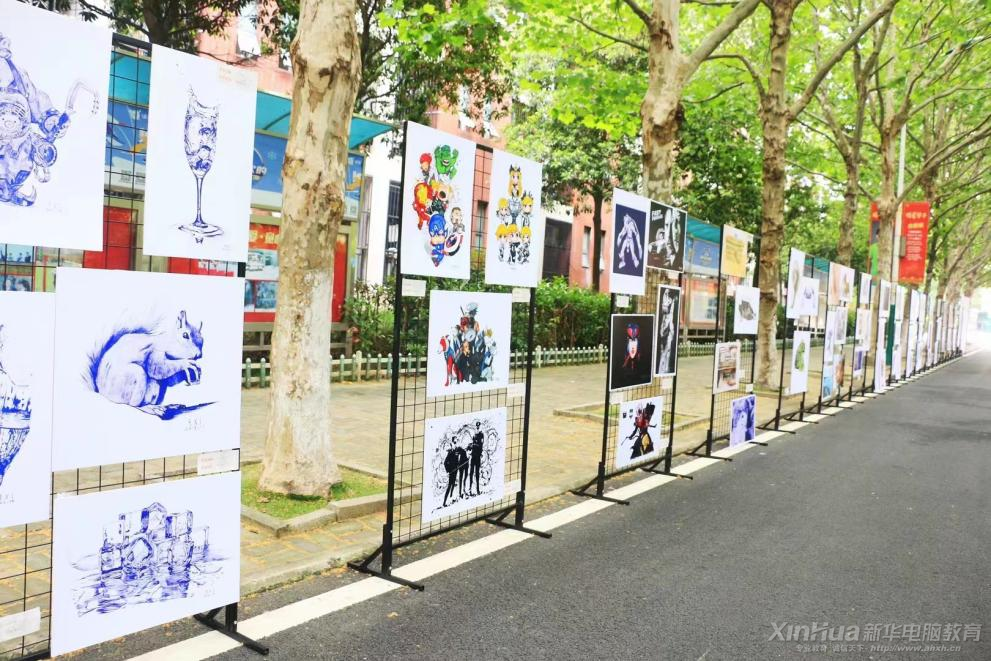 隨后,學校新同大道開始布展,開始為期一周的職教活動周展覽活動。本次展覽主要分為安徽新華藝術學院瞿賢亮老師的個人藝術《繪·夢》畫展、各專業學科作品獲獎展以及校園社團展。上千余幅作品林立,新同大道瞬間成為職教文化長廊,使之成為職教活動周的打卡圣地。