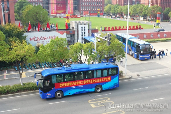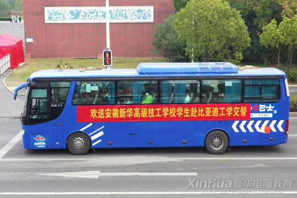 安徽新華學子有序乘車出發比亞迪