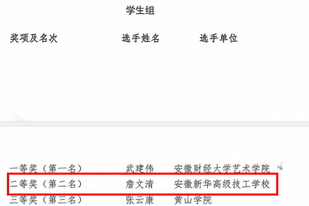安徽省工業(yè)設(shè)計行業(yè)職業(yè)技能競賽暨第二屆全國工業(yè)設(shè)計職業(yè)技能大賽結(jié)果公布,我校詹文清同學(xué)斬獲全省二等獎(全省第二名),被推薦參加國家級賽事。