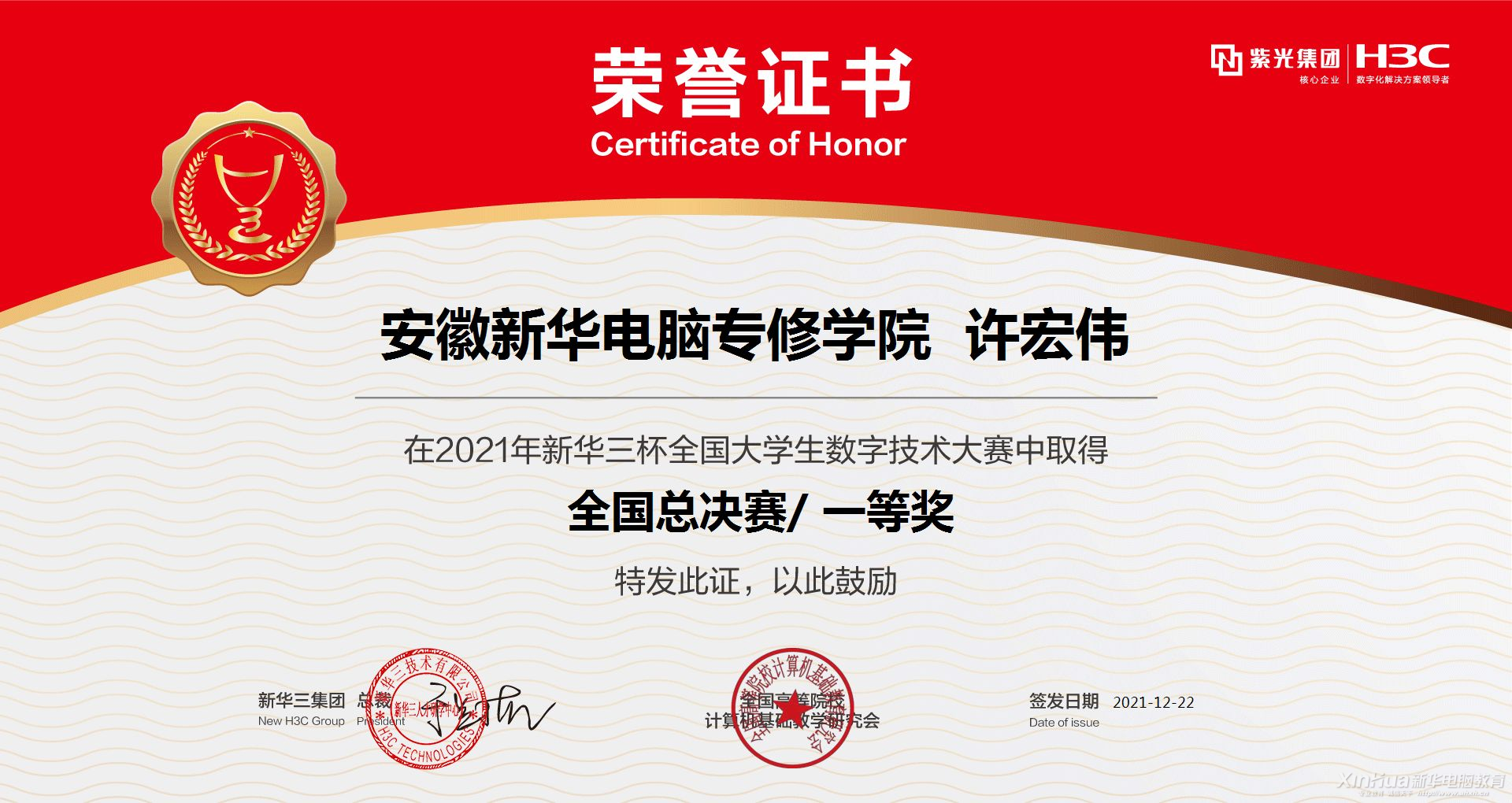 2021年,許宏偉同學(xué)榮獲本科組一等獎,成功被上海一家科技公司簽約錄用。