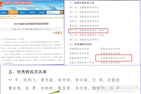 2022年12月12日,安徽省人力資源和社會保障廳正式公布“全省技工院校校園足球聯賽獲獎名單”,安徽新華高級技工學校榮獲全省第六名、體育道德風尚獎,教練員程真君獲評“優秀教練員”!