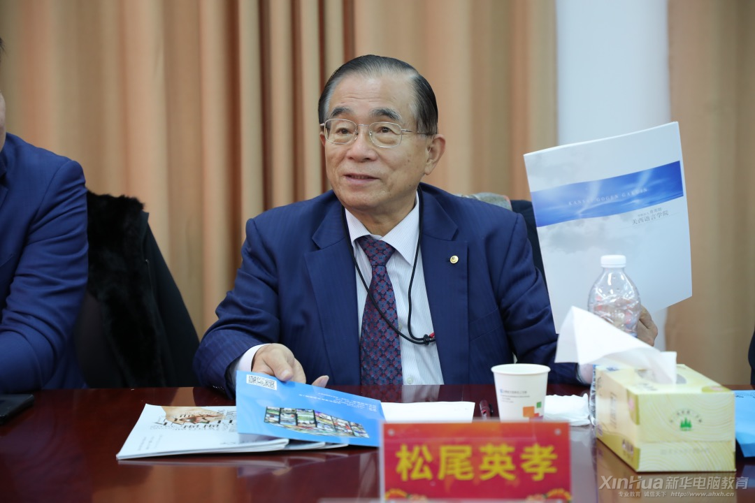 松尾英孝先生一行在副校長王俊的陪同下參觀了新華校園,他對安徽新華的辦學設施,溫馨的校園環境,先進的辦學理念、卓越的學校文化贊不絕口;并對學校在人才培養、文化打造方面取得的成果表示贊賞。