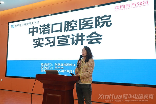 宣講會現場,中諾口腔醫院的負責人詳細介紹了醫院的發展歷程、服務理念以及實習崗位的具體要求。他們表示,中諾口腔醫院一直致力于為患者提供高質量的口腔醫療服務,并希望通過與安徽新華高級技工學校的合作,共同培養出一批具有專業素養和實踐能力的優秀護理人才。