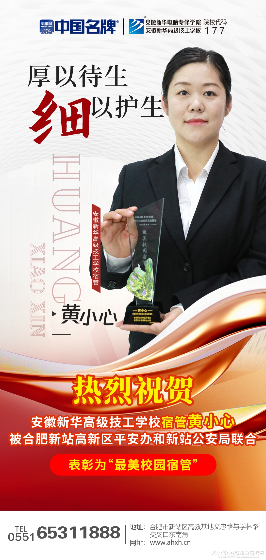 我們相信,在全校師生的共同努力下,安徽新華高級技工學校的明天一定會更加美好!讓我們再次向黃小心老師表示熱烈的祝賀和崇高的敬意!