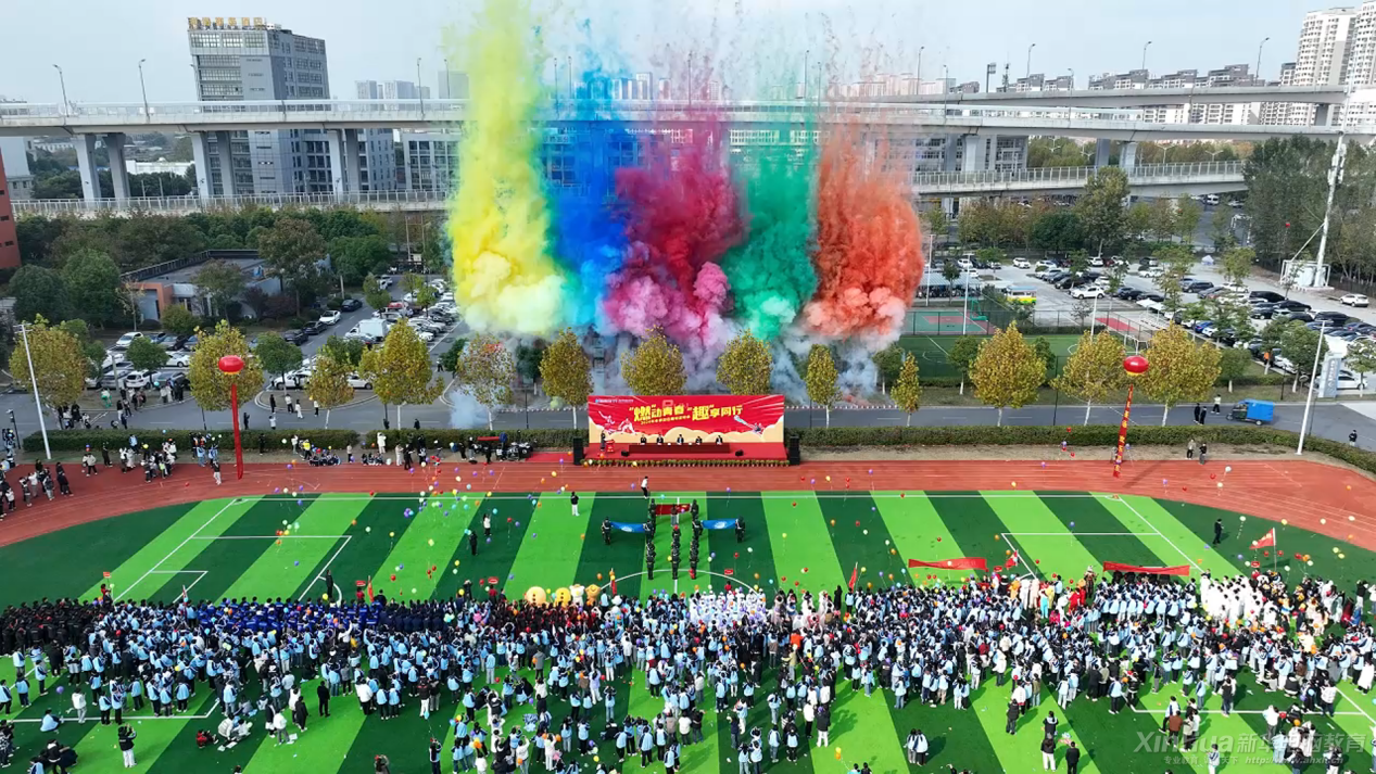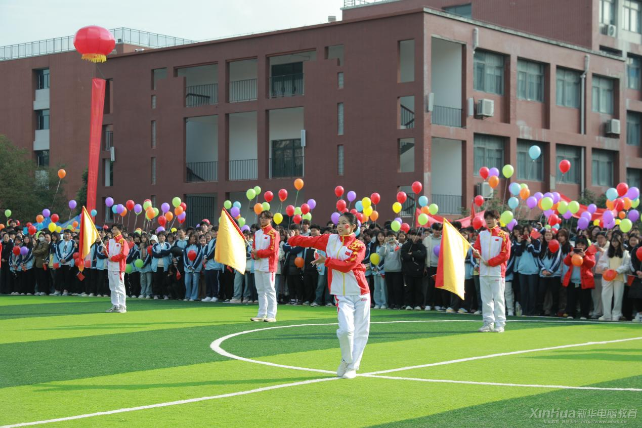 最后,王勝校長宣布安徽新華2024年冬季田徑趣味運動會正式開幕。伴隨著彩煙的噴發和觀眾手中氣球的起飛,整個會場沸騰起來,歡呼聲、掌聲此起彼伏,將開幕式推向了高潮。