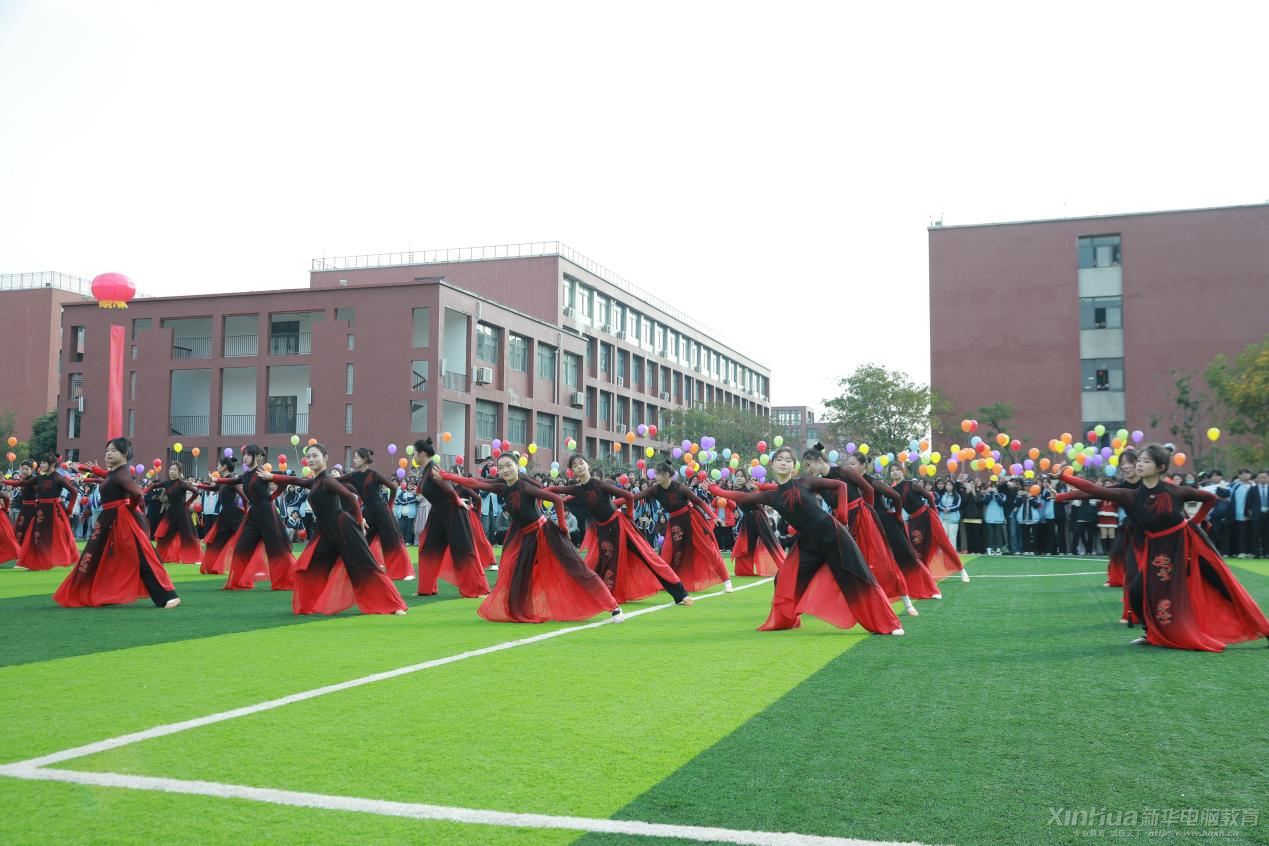 緊接著,精彩紛呈的文藝展示拉開了序幕。開場舞《旗開得勝》以其歡快的節奏和動感的舞姿瞬間點燃了現場的氣氛。隨后,太極拳表演《太極宗師》展現了中華武術的博大精深與柔美和諧。啦啦操《向快樂出發》以青春的活力和歡快的旋律,贏得了觀眾的陣陣掌聲。升學部的青春馬克操《冠軍》、人文系的舞蹈《象王行》、藝術系的護士禮儀操《平凡天使》以及智能制造與信息工程系的軍體拳《精忠報國》等節目輪番上演,每一個表演都充滿了創意與激情,展現了同學們多才多藝的一面。
