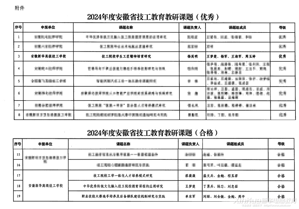 近日,安徽省人力資源社會(huì)保障廳發(fā)布2024年度技工教育教研課題結(jié)題評(píng)審結(jié)果公示,安徽新華高級(jí)技工學(xué)校憑借在技工教育領(lǐng)域的深入研究和積極探索,榮獲多項(xiàng)殊榮。其中,《技工院校學(xué)生工匠精神培育研究》課題被評(píng)為”優(yōu)秀“等次,《技工院校工學(xué)一體化人才培養(yǎng)模式研究》《中華優(yōu)秀傳統(tǒng)文化融入技工院校德育課程的應(yīng)用研究》以及《職業(yè)技能大賽選手培養(yǎng)及后備梯隊(duì)建設(shè)機(jī)制研究與實(shí)踐》三個(gè)課題均獲得”合格“評(píng)價(jià),所有項(xiàng)目均獲立項(xiàng)。