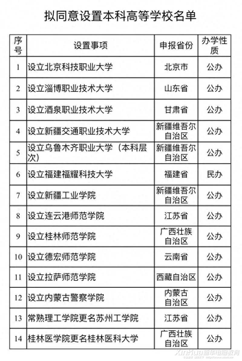 1月13日,教育部公示了北京科技職業大學、淄博職業技術大學、酒泉職業技術大學、新疆交通職業技術大學和烏魯木齊職業大學5所;兩天后,1月15日,又公示了黃河水利職業技術大學、武漢職業技術大學、長春職業技術大學和吉林鐵道職業技術大學4所。這9所職業本科賺足了“眼球”,上了不少榜單。