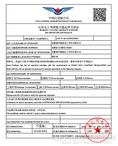 民航局頒發的運營合格證在無人機行業內被譽為不可或缺的“入場通行證”。安徽新華無人機專業負責人表示:“此前學生需自費近萬元考取行業準入資質,如今,學校通過實施‘課證融合’的培養模式,使學生在校期間就能參加民航局的認證考試,順利獲得‘CAAC無人機駕駛執照’,從而在畢業后立即具備合法開展無人機運營服務的資質。”據統計,持證畢業生在就業市場上競爭力顯著提升,起薪較普通從業者高出30%~50%。