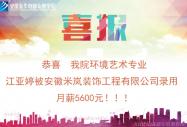 導語:   恭喜我院環境藝術專業江亞婷同學被安徽米嵐裝飾工程有限公司錄用,月薪5600元!!!