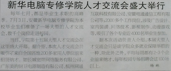 當前位置:首頁 > 新聞中心 > 青春新華 > 《市場星報》報道:新華電腦專修學院人才交流會盛大舉行