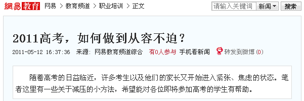 網易教育頻道訊 隨著高考的日益臨近,許多考生又開始進入緊張、焦慮和自卑的狀態。家長們干著急卻無濟于事。
