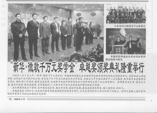 《新聞報道》2006年4月總第178期報道:《安徽商報》報道:新華四月 共建文明校園