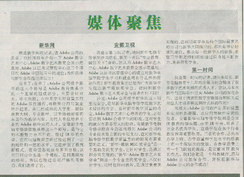 皮卓丁:皮卓丁:Adobe公司授予新華的這三個稱號是Adobe教育體系中的一個重要的組成部分,主要是針對大、中專院校,在培養學生時設置實用的Adobe軟件課程,將軟件應用與就業結合起來,在已經成熟的大學里,提供教育大綱、專業教材,以市場最需要的東西作為教學內容,為用人單位培養專業的Adobe軟件應用人才。安徽新華電腦專修學院能獲得這三個稱號,是與它的不斷努力分不開的,經過18年的辦學,它在電腦教育方面已經達到了一定的地位和一定的水平,它還開創了教育新模式,在全國各地設有多所分校,這在同行業中也是一個模板,是同類院校的榜樣。所以在經過公司嚴格的考察后,我們選擇了它。
