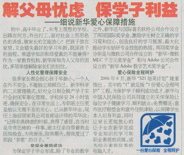 當前位置:首頁 > 新聞中心 > 青春新華 > 《合肥晚報》報道:解父母憂慮 保學子利益
